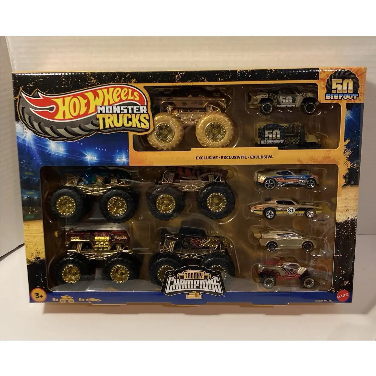 Hot Wheels Monster Trucks 50 Bigfoot Trophy Champions Rare 50th Anniversary Set