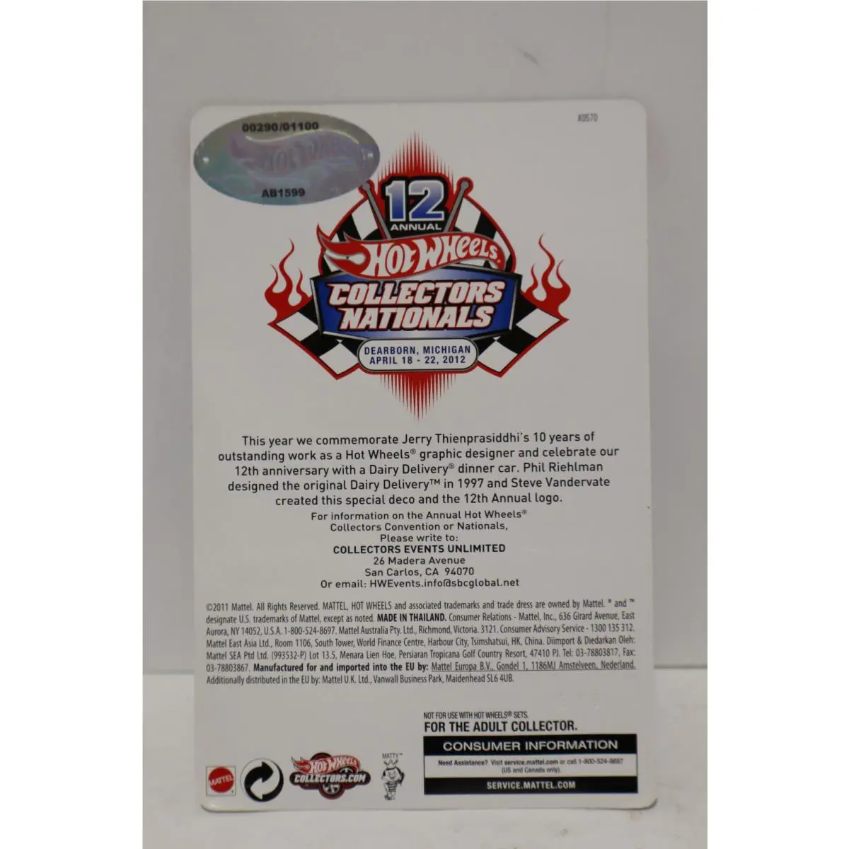 Features: Special Edition RLC 12th Annual Collectors Nationals Real Riders Dinner Car 1 of 1100