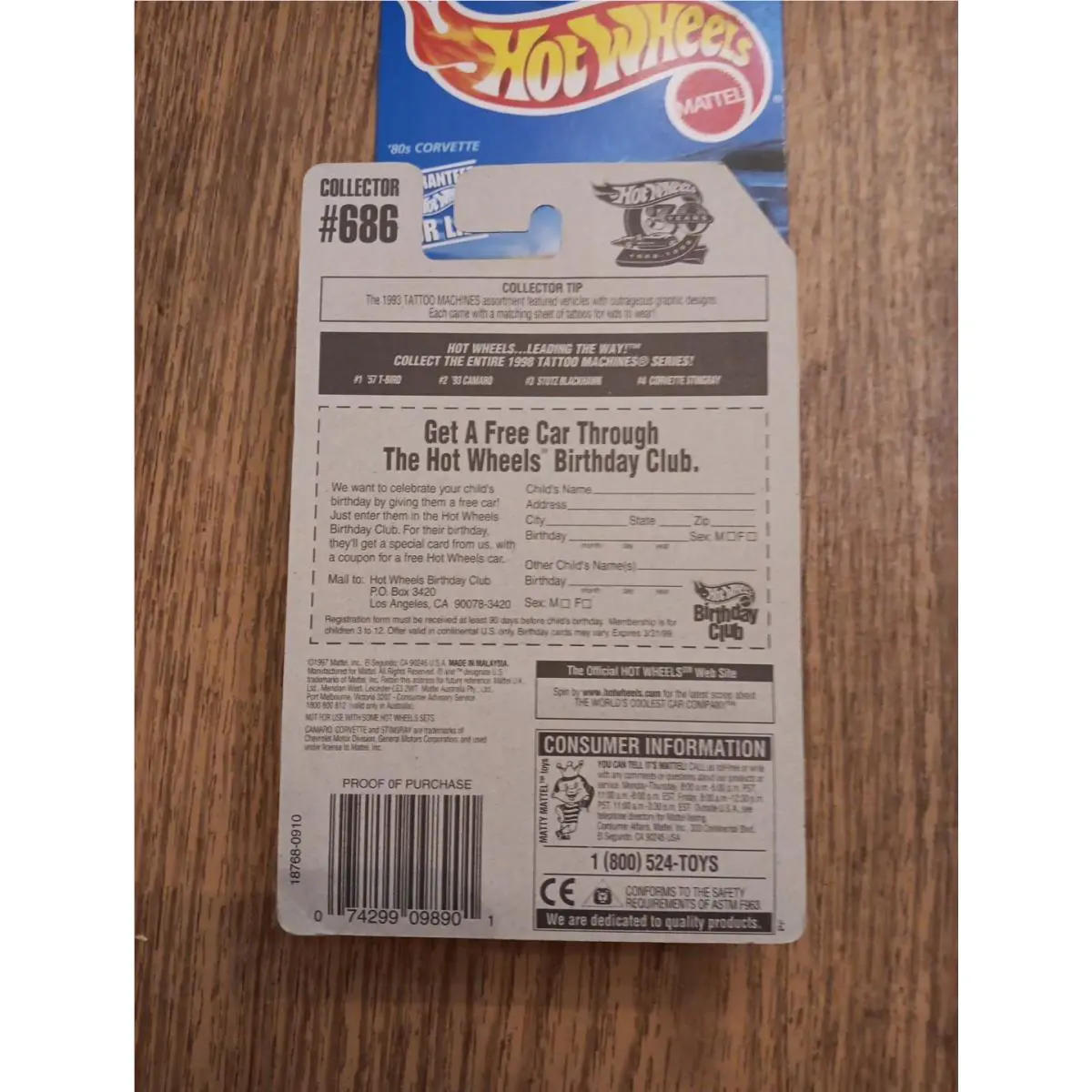 Error Wrong Car On Card 1997 Hot Wheels `93 Camaro 686 with `57 T-bird Blue Htf