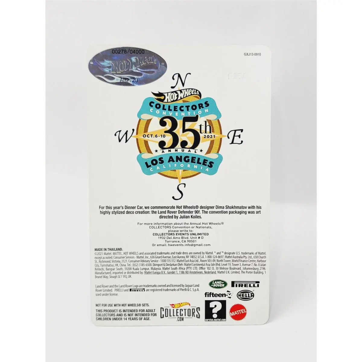 Hot Wheels 35TH Convention Land Rover Signed Dinner 278 Very Nice JJ22