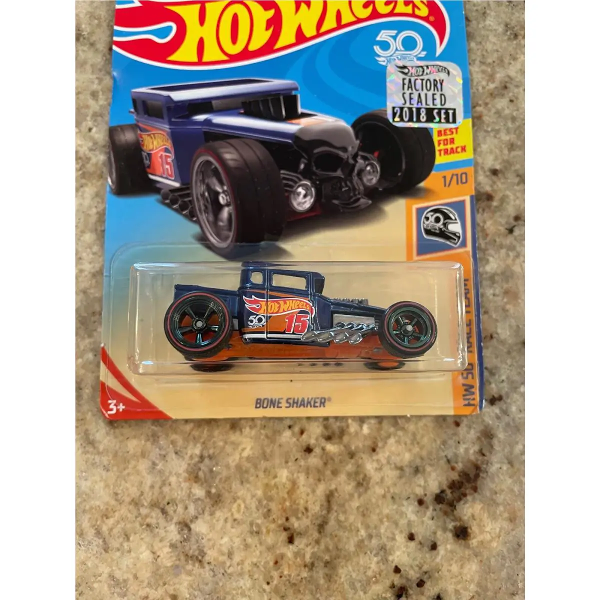 2018 Hot Wheels Super Treasure Hunt - Race Team - Bone Shaker w/ Sticker