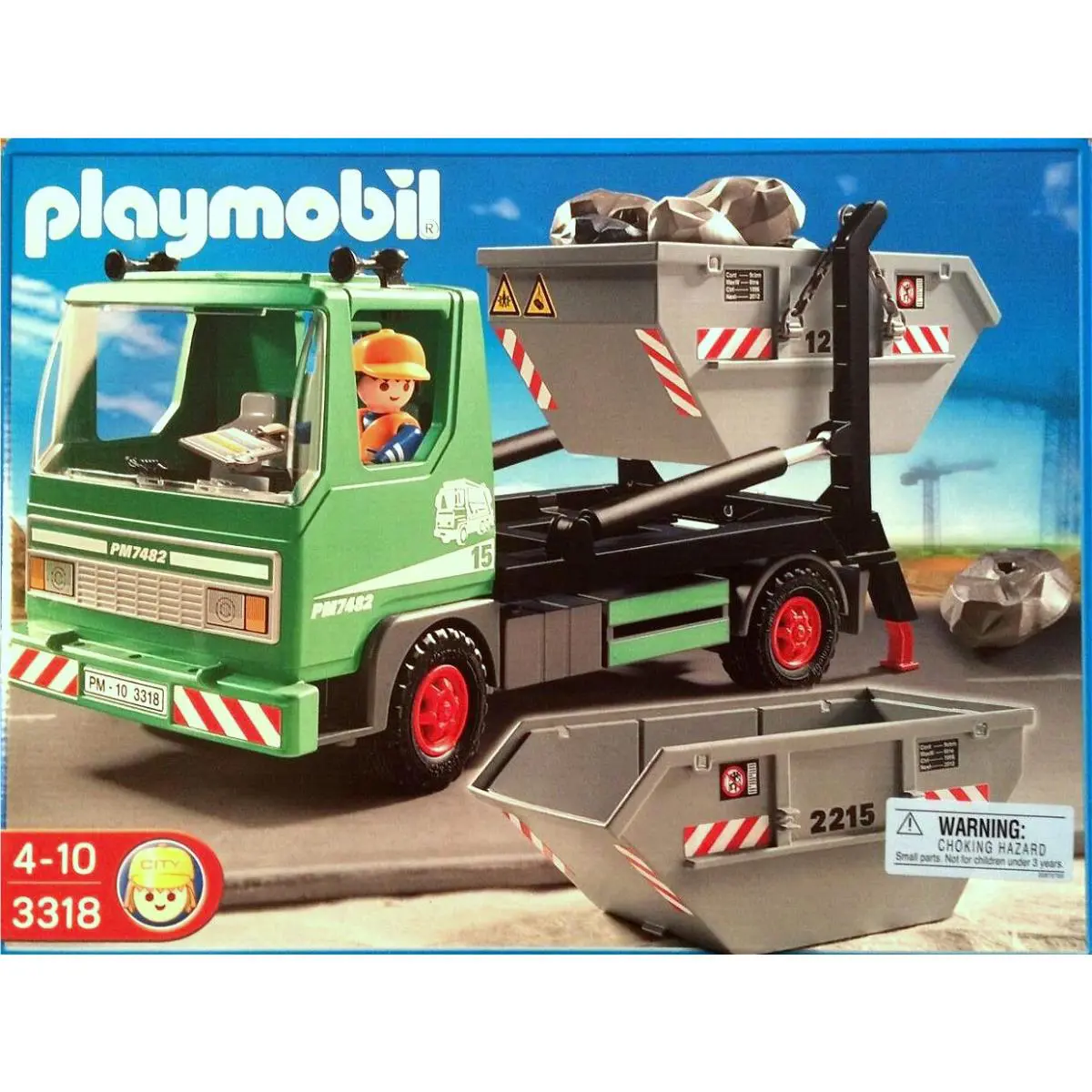 Playmobil 3318 Skip Truck Garbage Lorry with Rock Dirt Containers