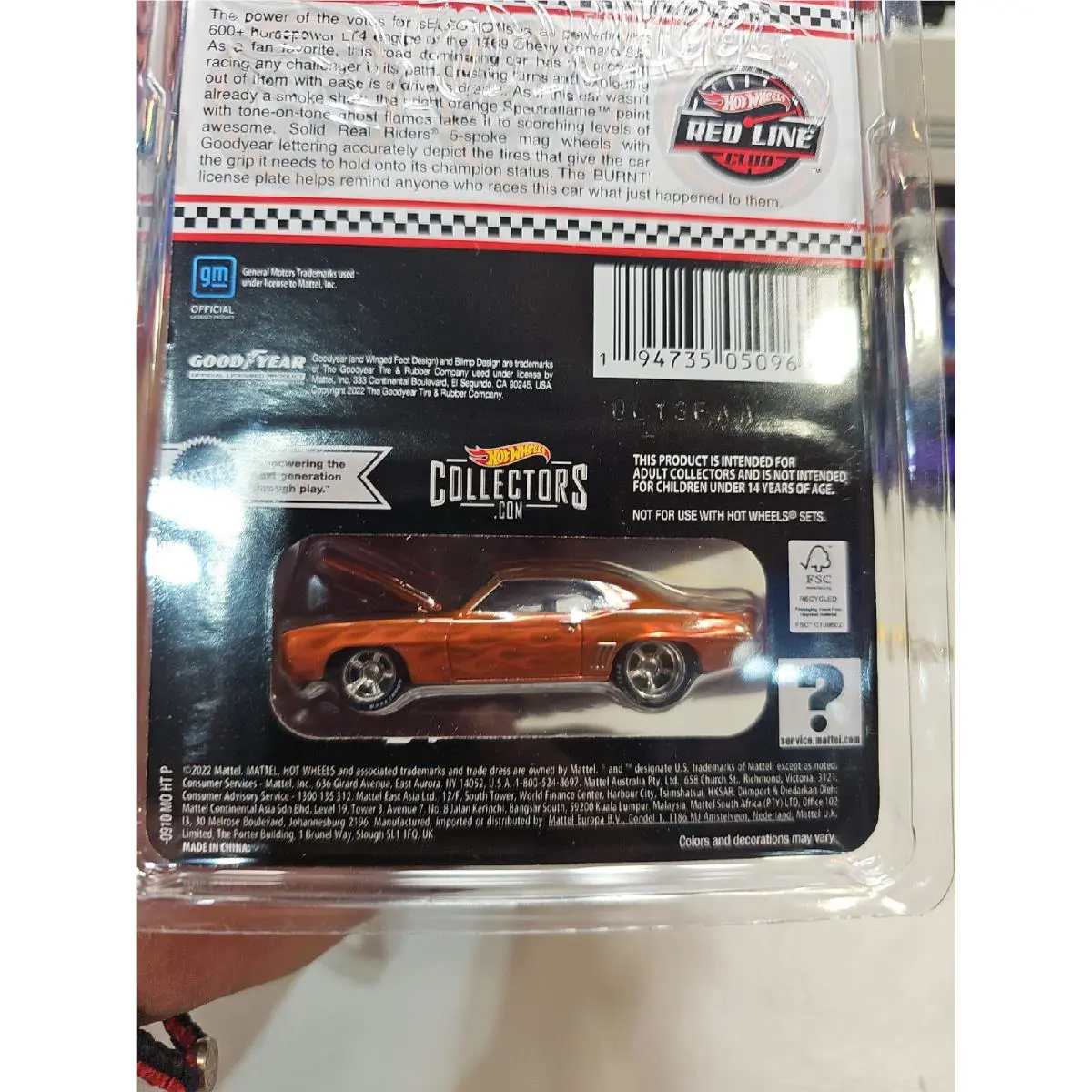 Hot Wheels 1969 Chevy Camaro SS Chrome Orange `69 Rlc Red Line Club Selections