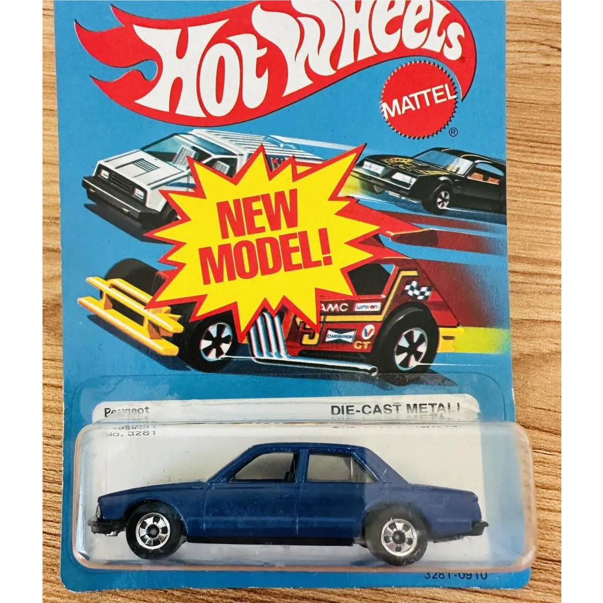 1981 Hot Wheels Peugeot No. 3281 3281 Blue Sedan Made In Hong Kong Mint On Card