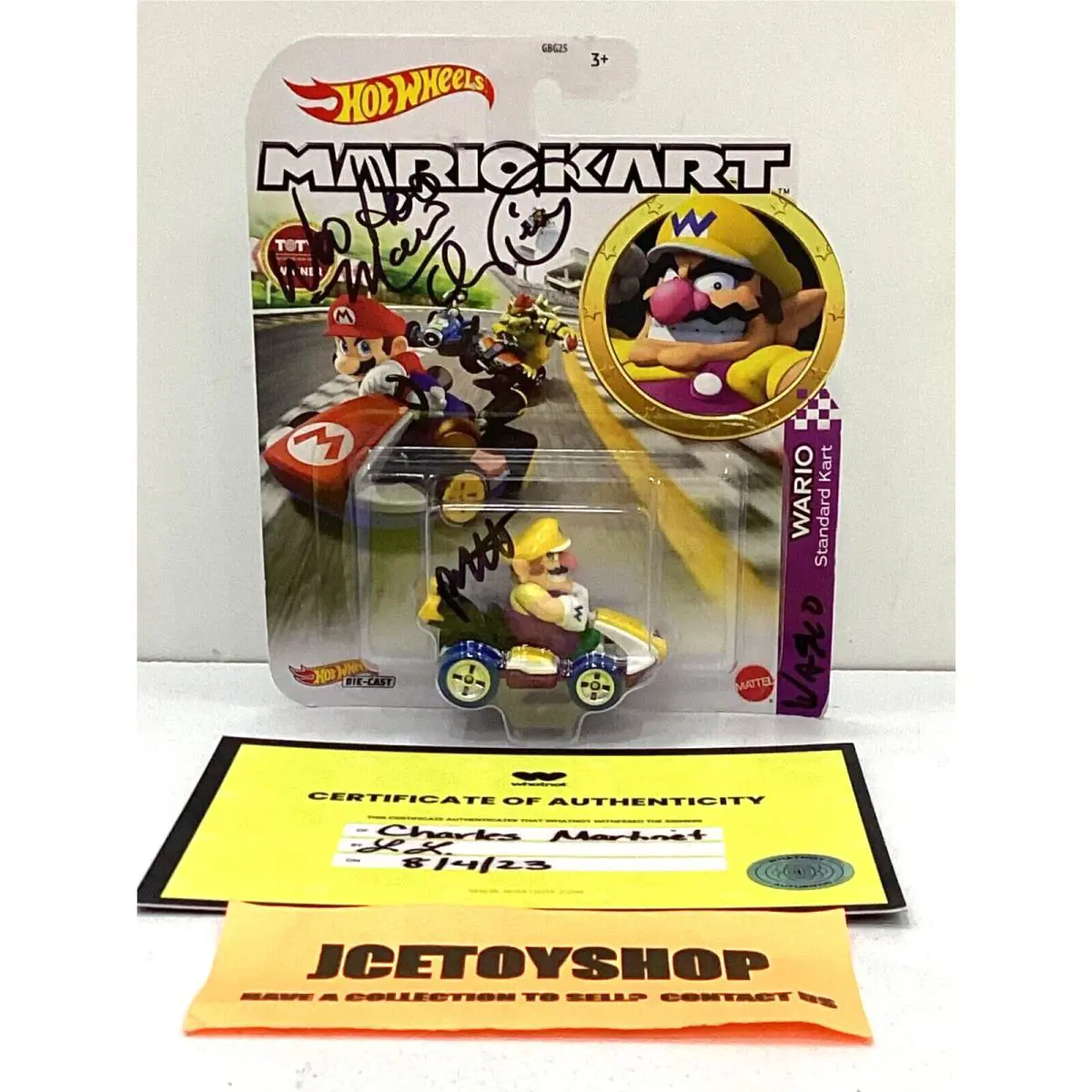 2020 Mattel Hot Wheels Mariokart Wario Standard Kart Signed Charles Martinet Coa