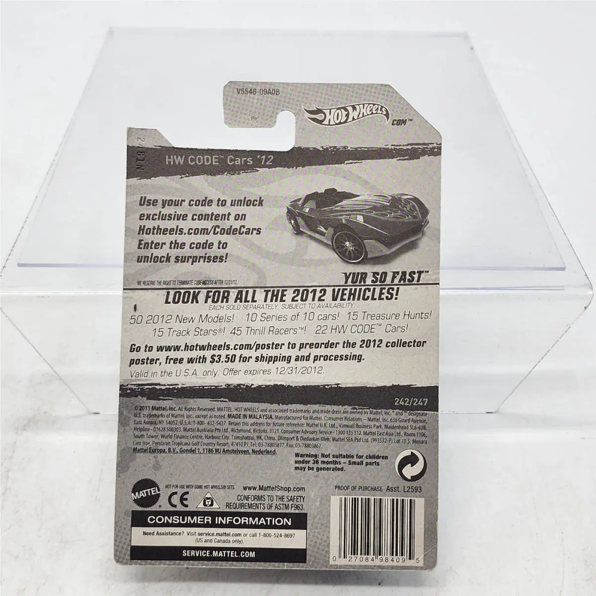 2012 Hot Wheels HW Code Cars Yur So Fast 242 Factory Error No Base/chassis