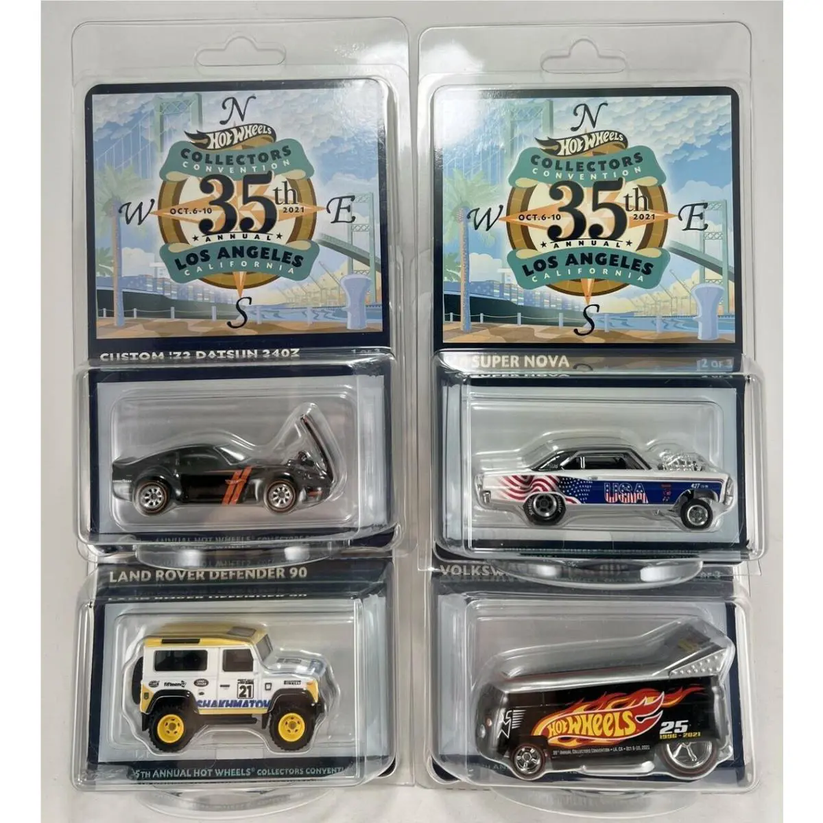 2021 Hot Wheels 35th Lax Convention 4 Car Set Nova Datsun 240 VW Bus Land Rover