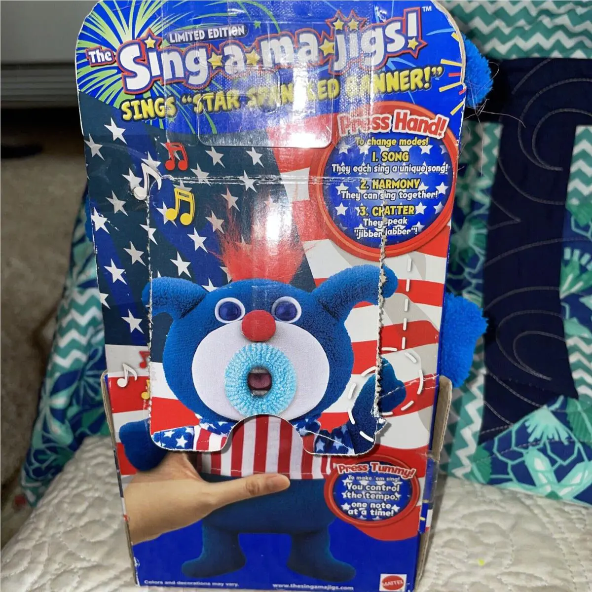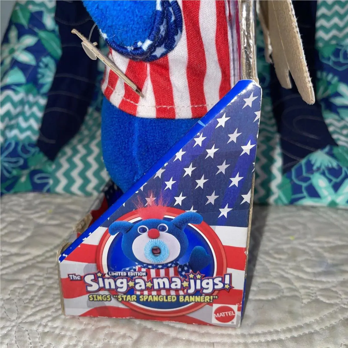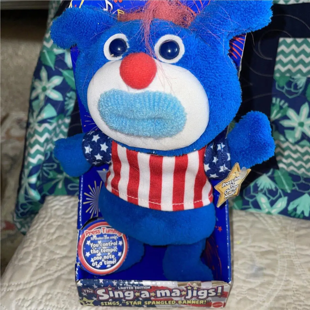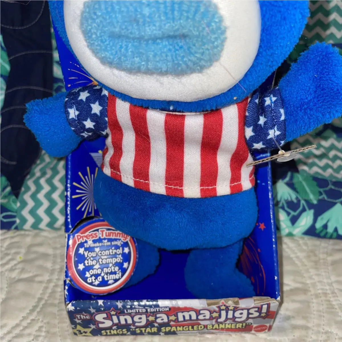 2010 Sing-a-ma-jigs Stars Stripe Bear Plush Toy by Fisher-price