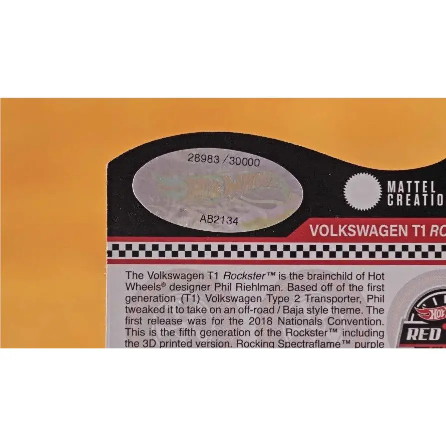 Hot Wheels 2023 Red Line Club Volkswagen T1 Rockster Release 28983 of 30 000