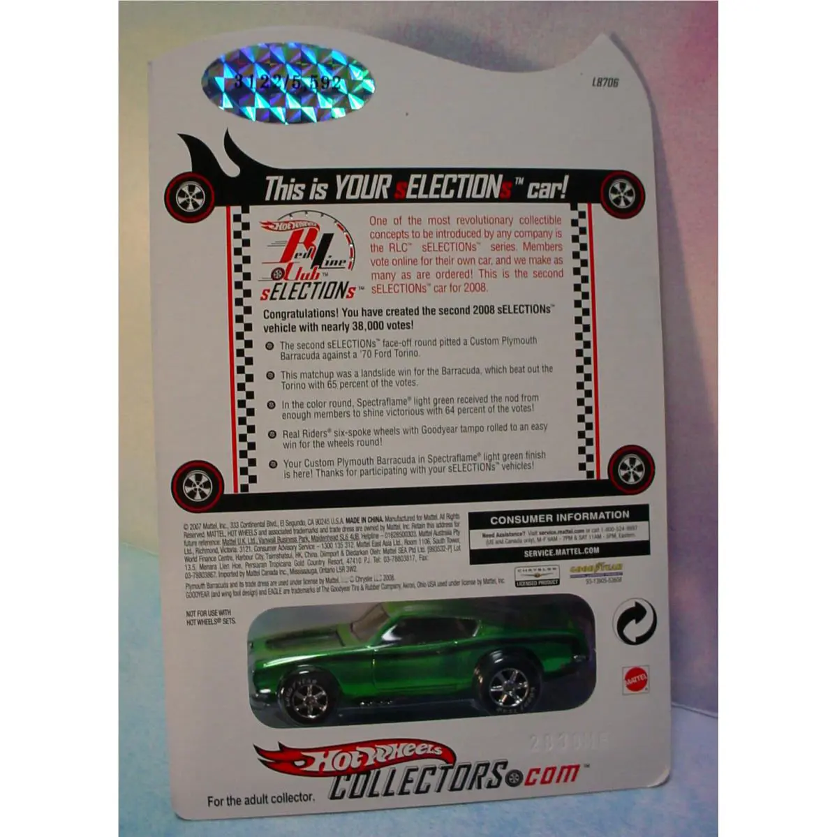 2008 Hot Wheels Rlc Selections Custom Plymouth Barracuda Green 3122/5592