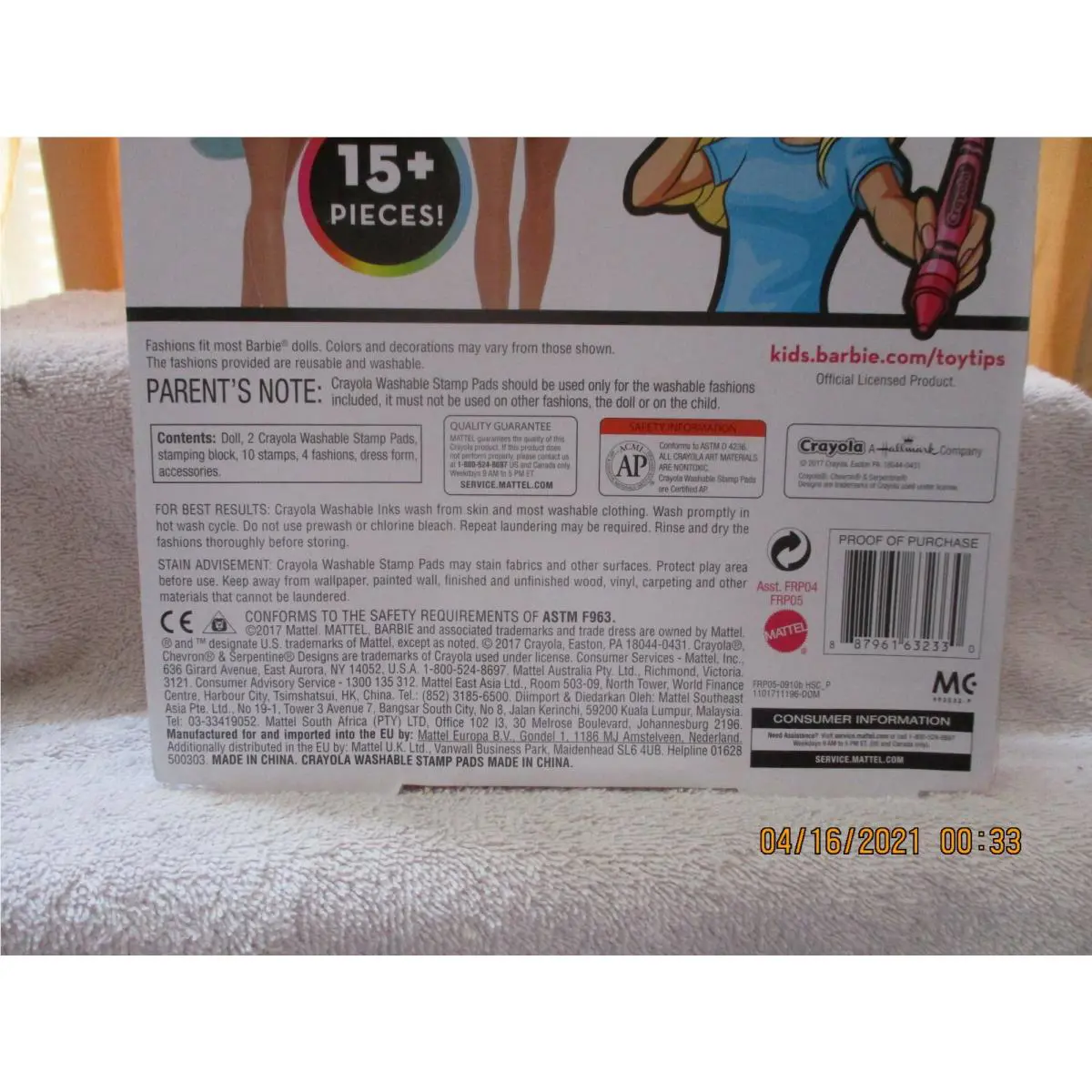 Barbie Crayola Color Stamp Fashions 2017 3+ Mattel
