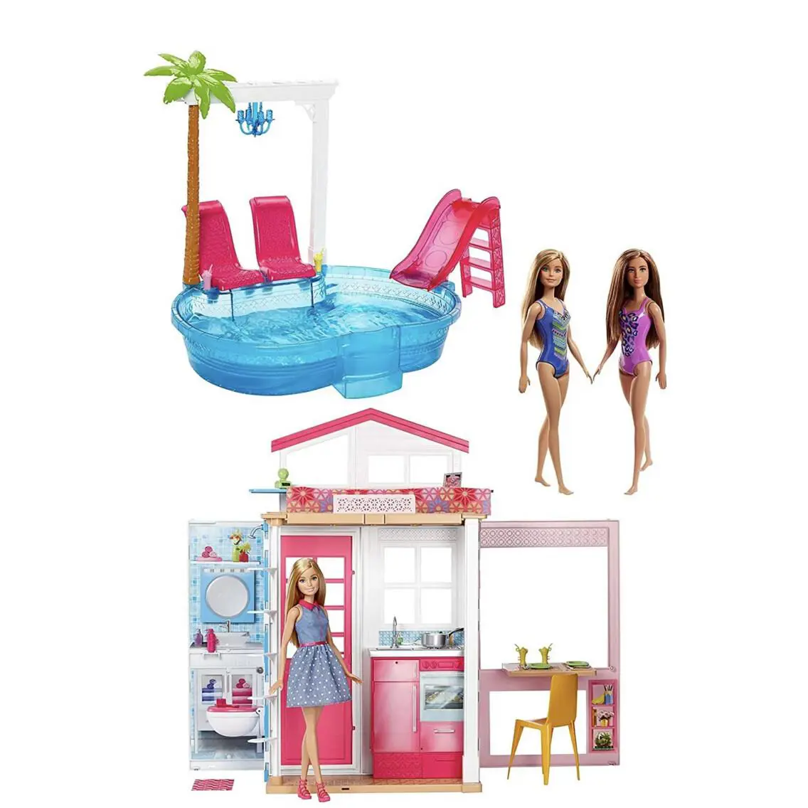 | Set Includes: | Accessories House 3 Dolls Fully Furnished Pool |